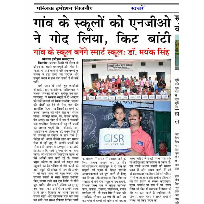 News coverage by Public Emotion Bijnor for GISR KIT Distribution on 2nd October 2021